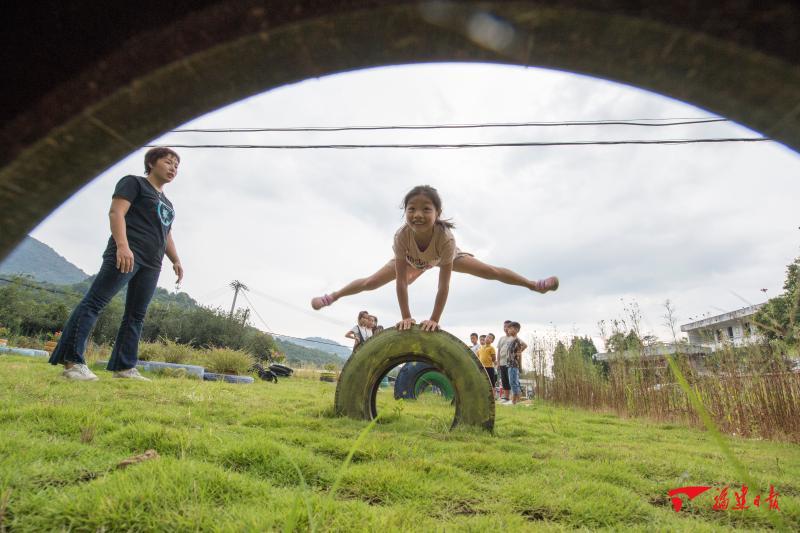 永春蓬壺鎮仙嶺小學的操場上,孩子們在老師的指導下用輪胎改造的各種運動器材進行鍛煉。該課程獲得第二屆全國小學體育活力校園創新獎優秀案例。福建日報記者 王毅 攝oIB福鼎新聞網|今日福鼎|福鼎新聞信息權威發布平臺